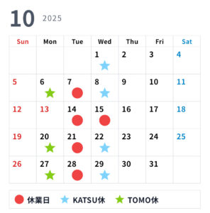 10月 休業日のお知らせ