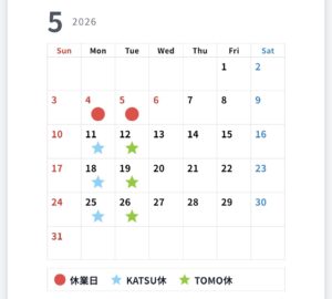 5月 休業日のお知らせ